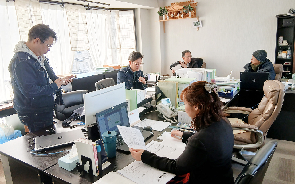 13:00午後業務管理や売買の方は現場に行くことも多いです。経営推進部のスタッフも、午後15時過ぎには落ち着いて仕事に集中できる時間ですが、中にはアパートの入居者からSOSがきて緊急出動も。